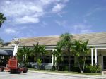 Here is a tile roof in the process of being cleaned. Notice the tarps we used on the plants ? This Tampa Tile Roof Cleaning Customer had a bad experience with a one man tile roof cleaner he found in the Tampa Yellow pages. It was a cool day when we tarped these plants. One must be careful when tarping plants when cleaning a tile roof The heat can kill or brown the plants. We prefer a lot of water to protect the plants from the non pressure tile roof cleaning chemical.