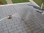 Now, we specialize in the cleaning of roofs and offer the newest and only "approved" [ by the roofing association ] " NO PRESSURE " often called "Non Pressure" or "SOFTWASH" roof cleaning system. For asphalt shingle roofs, this system is a must and can add years to your expensive roof's life! Pressure cleaning a shingled roof removes a large percentage of the granules, that make up the surface and color of your roof. Even tile roofs benefit from our "NO PRESSURE" system, in that high pressure will send small pieces of tile and especially the cement holding your ridges in place, off into space! Also, if you have a finish on your roof, such as a solid paint coat or a glazing, high pressure can peel the paint or dull the glazing. Many Pressure Washers advertise "NO PRESSURE" but don't actually own the equipment. They simply use their pressure washing machine's chemical injector and end up using "SOME" pressure anyway and explaining [ if you see them do it ] that they turned the pressure way down. ANY pressure will remove much of your asphalt shingle granules! Click below to go to the roofing manufacturers association and read for yourself it's simple clear statement about pressure- "HIGH PRESSURE WASHING SYSTEMS FOR ALGAE REMOVAL SHOULD NOT BE USED" http://www.asphaltroofing.org/pdf/tb_217.pdf