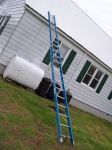 Wow Pat I bet he was !!! I slipped on some wet cedar once and caught myself on the edge, sittting on the roof. It wasn't very high up but still scary. I need an adjustable Ladder Stuart, the thought never even crossed my mind but it shore would beat building a platform from scarp wood to make level ground!!! I like to use a long prybar to secure ladders that seem unsafe. As in if you need to use a wide angle on your ladder it can slip out very easilly so pounding the length of a prybar into the ground securing the first rung of the ladder from moving is a great old-school trick I learned around here from some other contractors. Homeowners actually comment on our use of standoffs and prybar support.