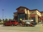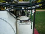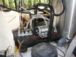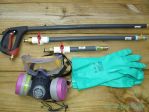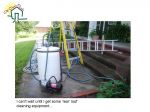 Here is a picture of my first "rig". lol. It has a 30 gallon plastic drum straped to a two wheel dolly, a lawn water booster pump from Lowe's, two garden hoses, two ladders, an extension cord, and a 7 selection spray nozzle.... don't worry, I was on the phone w/ Lori yesterday and plan to purchase 'real' equipment next week.