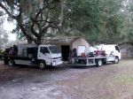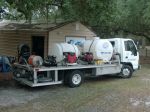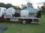 The aluminum bed truck has two 8 gpm hot machines a john blue chem pump,525 water tank,225 chem tank, four hose reels. 900 ft high pressure hose,300 ft chem hose,150 ft of water hose,rack below deck to hold three surface cleaners. the steel bed truck holds a alkota 5305 hot water machine,7 gpm cold machine and a 18 hp powered roots blower closed loop reclaim, a vac hose reel with 500 ft of 2 inch vac hose,400 ft hp hose,150 ft of water hose and a rack under the rear deck for 2 surface cleaners.