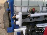 the pipe on the left goes to three seperate chem. tanks and also my 320 water tank. I can mix off of all tanks at once. I just thought that having two tanks with mix I was wasting alot. if i diddnt use all the mix on one job it was pretty much toast. this way was all the chems stay seperate and last longer. I have all the valves set for my mix and if I need alittle more love(SH) or any one thing I just have my ground man open a valve. It seems to work great so far.