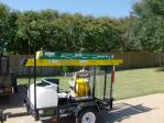 Here is my rig. Pump is under hose reel mounts. 5850 Devlin pump for chemical transfer. Rigid air compressor is carried in the back of my truck. Just got tanks lettered. I am also working on a sign for the back of trailer but want to wait until website is done to include web address on sign. I found bucket truck cheap at the auto auction. Never know when it will come in handy.-