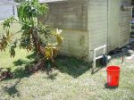 The before & in between & after of the roof.  We also gave the pump house shed a little of the juice to clean the rust away as well as starting on the palm trees.