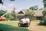 I really don't know Lori. My Son sold that particular Pasco County Roof Cleaning job. Actually what happened is this. He cleaned several roofs in Wilderness Lakes in Land O Lakes. I guess one of the roofs he cleaned sugested us to the Homeowners Association, and they hired him to clean these roofs. We headed up to Pasco County with all our roof cleaning trucks full of chemical. Thats 300 gallons times 4 (2 tanks each truck) so that was 1200 gallons total cleaning mix. If you look closely, we emptied 3 tanks! So, that means we used 900 gallons of highly emulsified roof cleaning chemicals to clean this Pasco County job. Because of the steepness of these roofs, and all the plants nearby, we took the roof cleaning chemical all the way to a wet foam by using an excess of surfactant. So, just like this church we cleaned last year, the roofs will not look their very best until they get a good rain up in Pasco County. God knows we need some rain right now Lori, my allergies are acting up from all the pollen in the air.