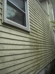 I let the sauce stay on the siding for about 5 minutes, then scrubbed with a push broom.  After rinsing, the results were impressive!
