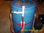Using a 5850 Delavan pump, 5/8 Kuri-tech hose, (bought from Lori at PWP) and made our own manifold and valve system. Made our own nozzles with info we found here. The manifold is a simple design which allows us to transer SH to the barell, or draw chemical from another container as well as draw clean water for pump rinsing.