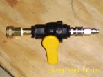 1/2 inch banjo ball ball valve with a 2 inch brass nipple and brass female hose connectoin to screw onto hose. Viton seals of course, 1/4 inch stainless QC and 1540 nozzle. After hand tightening the valve to the hose, a little tweek with a pair of channel locks seems to prevent any leaking so far.