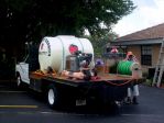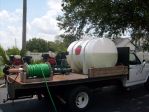 I forgot to add that when we did this Tampa Shingle Roof Cleaning we were still using one of our old roof cleaning trucks. The reason the air pump we were using here shot so good is because we had a 18 cfm compressor powering it. You can see in one of the pictures there are 2 compressors on the truck, so I could do my roof cleaning pump experiments. Better for roof cleaning to have too much air, vs not enough. This was the yamada ndp 15 1/2 inch roof cleaning pump we used that day.