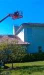 Here are some Tampa Palms Roof Cleaning pictures. This home inTampa Palmswas big, and had a fragile tile roof that did not permit walking, so we used a lift. We also cleaned the pavers in the driveway for our customers. Apple Roof Cleaning Tampa does a lot of work in Tampa Palms, and are highly recommended by the people who live there by word of mouth. We specialize in cleaning the large roofs in Tampa Palms others walk away from, and we don't financially penalize you because you are fortunate enough to live in Tampa Palms. Most of our roof cleaning customers in Tampa Palms are repeat users of our service, and send us to clean their friends roofs. If you live in Tampa Palms, and need your roof cleaned by a company who knows what they are doing, give us a call.
