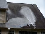 Check out this roof. Notice the repair at the right side of the chimney that was done before the cleaning. The roof was so dark the roofing company used a black shingle for the repair. The difference in the appearance of the house was remarkable but the customer complained that it didn't come clean enough. There are some people who will never be satisfied.