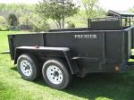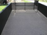 These first pics are of the trailer I already own and used for my construction business. A little overkill but I definately don't have to worry about weight issues. First thing that was done was a spray in bed liner on the floor and up the sides. I had quotes for Rhino and LineX at about $1200. My brother ended up doing it at the welding shop he works at for $0. This is the undercoating they use on some of the products they make. After the first season it held up great. He also welded me up that dual 55gal. holder shown.