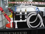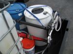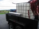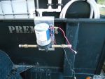 Here are a few pics of the plumbing setup. I had originally placed the pump in a battery box and later removed it for better access to it. I ended up making a plate attached to the pump that easily hangs over the side rail of the trailer ( sort of like how a ladder jack works) easy on easy off. The small length of coiled up hose is to easily transfer the SH to the mix tank and instead of switching the 55gal drums of SH, I keep the same blue drum in the trailer with the SH label and transfer fresh SH into that drum. My plumbing is set up to easily add SH and water from their respective tanks to the mix tanks with a few turns of ball valves. A note on the ball valves - I will try out the Banjo Brand valves this season due to the valve handles breaking on the PVC, I hear the Banjo brand move more freely.