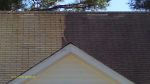 I forgot to mention that all three of these homes are in prominent locations in their neighborhoods. We offered a substantial discount to the owner of the 1 story house and it will be "striped" for a week. If you live in this neighborhood you cannot help but pass by the striped house with our yard sign out front. Roof Stain Removers loves stripes!