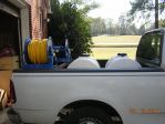 Dave, I am having to down grade my tool storage I had an aluminum truck box on my trailer, and now am having to use the old "behind the seat" storage. I only have a short bed, so storage in back is limited right now. I am not done with the build yet, but I had some jobs to do this week so I made it work for now. I just plumbed the mix tank through the pump and to the hosereel. I plumbed 3/4" to the pump from the tank and 1/2" from pump to the reel. I have EDPM 3/4" hose that will be used in the final plumbing for everything. I will be plumbing my fresh water "manifold" with 4 valves, and my Chem manifold for SH and other chems to add into mix tank. I will not have to climb in back of the truck for anything. I will not have time to work on the build till next week. When I do I will have pics and updates.
