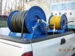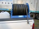 OK got some time today to work on the truck mount. I bought the red EDPM 3/4" hose to plumb everything in with. I bought a paintable bed liner from Tractor supply for $45 as opposed to the $99 Herculiner from Auto-zone. When I have everything fabbed up I will cover all the steel components with the paintable bed-liner. I will use the orange rubber pieces that I have to isolate the plastic tanks from the steel to avoid any abrasion and damage to the tanks. I still have to mount the battery, and pumps and plumb everything. If the rain holds out I will have it done tomorrow. I will disassemble, paint all the steel components with the bedliner, and reassemble on Sun. New Hose reel is loaded with 200' of 3/4" hose Chris