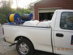 The second pump moves SH from the storage tank to the mix tank. I think I will replace this with a FAT BOY with 1" hose for faster transfer. The 4 way is my fresh water supply. I have a 50ft hose to connect to the home owners water supply. the 4 connections are as follows. 1. fresh water supply to the mix tank (Plumbed in) 2. fresh water to force through the 5058 pump and 200' of 1/2" AG hose (Plumbed in) 3. fresh water to supply my 200' of 3/4" rinse hose on hose reel (Plumbed in for house wash rinsing) 4. fresh water hose to fill buckets etc. over the side of the truck. I broke one of the 4 connections so I compensated with 3/4" ball valves and integrated the water feed to the mix tank and the force through the 5850 pump.