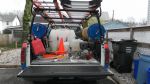 Bruce the red hose feeds water to my sh tank, the pressure washer, and a seperate line that you can hook a garden hose to. It keeps the vehicle as a central staion. The yellow hose is half inch roof chem line. The small blue hose is 200" of 3/8 pressure washing hose.