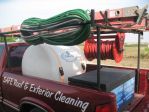 Got my equipment on order. I think I got what I need according to my research, great customer service at PWP and PressureTek, and informative replies from some of the members. I knocked the 300' of hose down to 200' (i'm going to see if my local auto parts store can crimp me some ends). I ordered 5850 pump for now, all the fittings, suction hose, and some tips. Welded up a stand tonight to mount the reel and pump (and fried my eyeballs doing it, thats why i'm up a 1am). I finally found a sh + surfactant source after about 50 phone calls and several web searches. I don't know if its a good deal or not but its the cheapest I've found and they'll deliver to my residence up to once a week for $27 per shipment. Have to go talk to my insurance agent and have her add this to my services, (if its even on their chart, roof cleaning is unheard of here). I'm going to practice on my neighbors roof. Then if I KNOW I can provide the service, it'll be time to do some selling. Once I get some money moving back in instead of out, I'll start playing with the equipment a little and modifying.