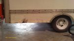 We have shelfs on one side and a bench on the other side. The only thing that touches the floor is our mixing tank so every few weeks we slide the tank out and hose out the truck. We did not do anything to our floor it is natural wood. The attached PDF is what it use to look like inside when we got it. I do not have a current picture.