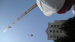 Thank you. They had radios to communicate. We didn't use high pressure on anything, though the rinse water was pumped to that height with the pressure washer. The man in the basket also used the pw hose to stop himself from spinning.