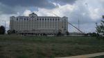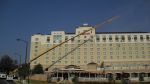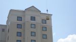 We clean the 11 story marriott in Spartanburg SC. We had to use a 300k lb 190' crane to clean it. There is a rest. off the back and a 280'x300 parking garage off the front of it. The PM was really happy when we were done! Came out great!