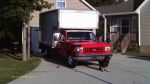 Used Uhauls start at around $4600. We got this pretty lady for $1200 with 2 new batteries. She was the last of their diesels. Don't fear the miles, they maintain their equipment very well. Feel free to beat them up on price, I offered half of what they wanted and they countered in the ballpark plus the batteries. They seem to have phased out the pickup truck chassis and gone strictly to vans, so get a bargain while they are still available. Our truck Big Red is a 14' retired Uhaul. Next week she gets wrapped and starts to earn her keep as a billboard. She's already earning her keep as a truck. We already spent more on fixing her up than the purchase price, but we're still way ahead of the game financially. The gaurd dog was an extra cost and no, she is NOT for sale.