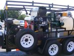 The owner chose Pressure Washer Products to remove some equipment from his smaller decrepitated trailer rig to his new tandem axle trailer. You see the following in the pictures: