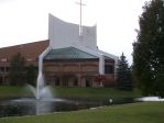 Here is a church Randy went to while growing up and with driving by quite often, the algae is really getting bad. Contemplating putting a proposal together, but this is going to require some serious thought. The terrain is sloped in the front in the use of a lift along with navigating all the landscaping and not killing off the very mature trees.