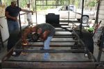 In this set of pictures we're cutting out the old wood and stripping the trailer to be sand blasted and painted. Also replaceing rusted out cross braces.