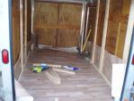 Came home Monday night and my buddy had dropped off my trailer. So far I took out the shelves and drawers. I stained the walls and floors and then put down the linoleum. I also put down some framing to give me some anchor points. I'll probably be picking up the hot water skid tomorrow. May have been easier to just replace the floor in a few years.