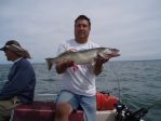 We are fishing rivers. Most of the time it's with light tackle, 4 -6 pound leaders. When you hook into a 8 -12 pd. chrome bullet, you start to wonder if you are using the right stuff...