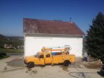 Roof Cleaning by A&E contracted this shingle repair and Non Pressure roof cleaning job during the PA Garden Show. The barn roof is composite slate shngle and is covered with black stains and algae. Today, prior to the cleaning scheduled for Tuesday March 27, we replaced some damaged shingles. Before and after pics of cleaning will be posted tomorrow.