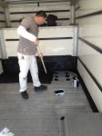 Finally, I am 95% finished with this build and used the new set-up for the first time today! It took a bit longer than I expected but, I am very pleased with the results. I added a new pump in addition to the 5850 and ALL FLO that I had been using and hard lined my chemical and H20 tanks to make mixing easier without having to pour chemicals or water to my mix tank. I installed an exhaust fan and am going to add an exhaust hose for my air compressor which will vent through the floor of the truck. I also need an exhaust deflector for the Hydro Tek unit but, that will come later and need to add another Titan hose reel to my stacking unit for my pressure washing hoses. I still have a little bit of wiring to "tidy" up and some fine tuning with my hoses but, all and all, she's done! Now, I can move on to the outside of the truck and start the design of my lettering to get my rolling billboard some attention.