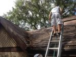 This Killearn Estates home, located in Tallahassee, Florida was roofed with Hardi-Plank shingles. The house posed a couple of unique challenges. The severe pitch would be difficult to walk on a asphalt shingled roof, but when covered with 1/8 thick inch brittle concrete shingles it becomes impossible to access by foot.