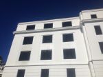 Stains under windows are not biological in nature, they have been caused by years of leaching from copper windows screens. Cleaning is a multi-stage process with a gentle softwash, rinse, then another application of a cleaner to remove these stians and a final rinse.