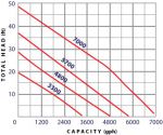 Ed is 100% on this. Below is a chart for a sump pump (couldn't find one for Delavan). And to just throw some numbers around to make it a little more clear; If a gallon of SH weighs 8.34 pounds and you have 5 gallons of SH in your hose (I have 225' and it holds about 5 gallons). 5 gallons weighs 41.7 pounds and if you had your hose 200' in the air, that would mean there was 41.7 pounds of back pressure forcing back on the outlet side of the pump. Now half that. That's 20 pounds of back pressure with the hose 100' up. That's quite a bit of head pressure for these small pumps.