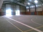 It was a challenge that's for sure. The floor measured 120' x 80' and was no where near level. We had to clear the floor of all the puddles so they could use it the next morning.