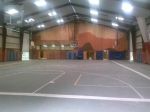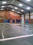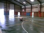 It was a challenge that's for sure. The floor measured 120' x 80' and was no where near level. We had to clear the floor of all the puddles so they could use it the next morning.