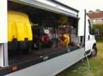 The tanks in the photos will have to be fixed in with a frame which will support the hose reels you see on the plywood. ( this is a trial working version )The pressure washer, generator, hot box have to be secured.