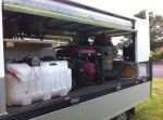The tanks in the photos will have to be fixed in with a frame which will support the hose reels you see on the plywood. ( this is a trial working version )The pressure washer, generator, hot box have to be secured.