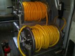 That was a 600 gallon tank, and it has 3 hose reels on it. 2 of the 3 hose reels were quite "active", with huge John Blue (19.3 GPM @250PSI) Gas Powered Pumps hooked to them, all sucking from the 600 Gallon Tank.