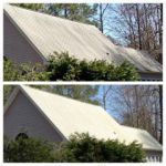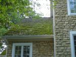 We did a roof last week that was plagued with moss. The one photo looks like a gutter but it is actually a very narrow strip of roof over the front door. We treated the roof and killed all the algae, moss and lichen. We explained to the HO that the moss is now dead and will rot away.